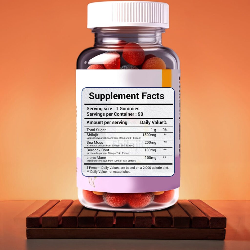 Plant-Based Formula – Includes shilajit, sea moss, burdock root, and lion’s mane extract.